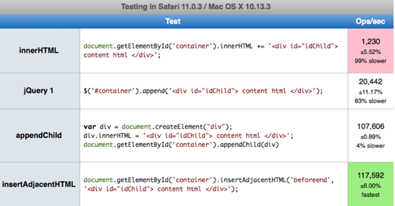 insertAdjacentHTML 은 HTML 추가 함수들 중에서 가장 성능이 좋다.