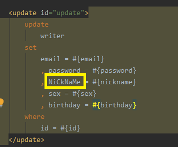 - 일반적인 SQL문과 마찬가지로 컬럼명 대소문자 상관없이 값을 조회, 수정 가능.
