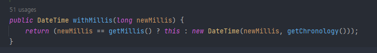 JodaTime의 모든 변경 메서드들은 신규 객체를 생성해 리턴 합니다.