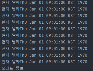 쓰레드에서 날짜를 출력 받겠습니다.