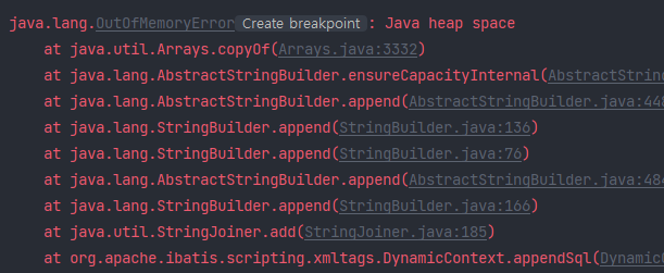 55번 째 batch insert가 실행되고 56 번째에 여지없이 Out Of Memory Error가 발생했다.