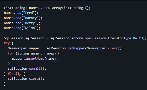 try(SqlSession sqlSession = sqlSessionFactory.openSession(ExecutorType.BATCH)) {